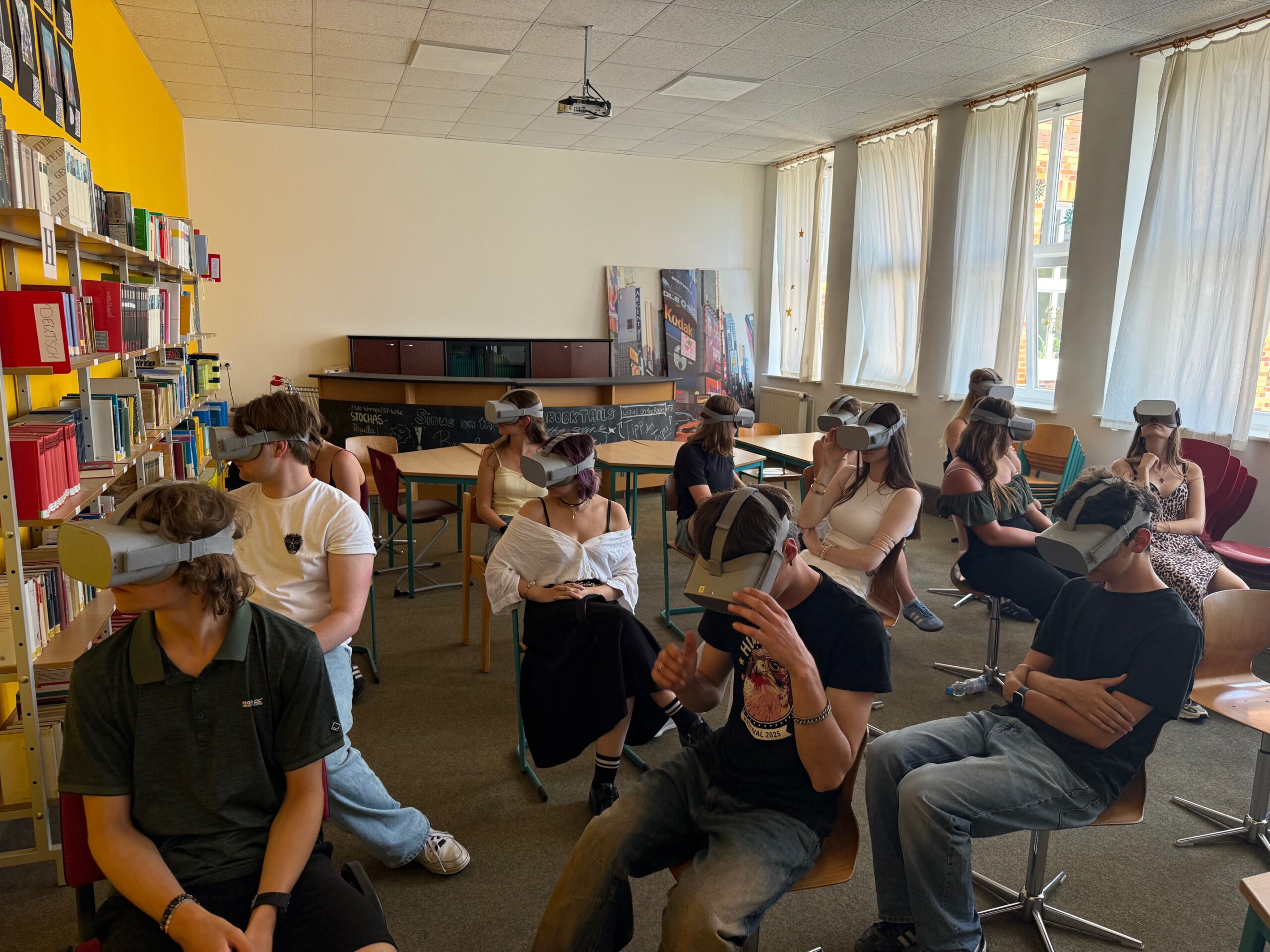Der Geographieunterricht lebt davon, dass Schülerinnen und Schülern möglichst alltagsbezogen und erfahrbar zu betrachtenden Räume veranschaulicht bekommen. VirtualReality-Brillen, auch VR-Brillen genannt, sind daher nicht nur bei Spielefreunden beliebt, sondern können den Unterricht bereichern. Die Oberstufenschüler der 11. Klasse der beiden Geographiekurse kamen nun in den seltenen Genuss, sich in 360°-Perspektive durch den Raum zu orientieren. Dabei kann es so einfach sein – Brille auf und schon befindet man sich im afrikanischen Staat Kenia, genauer gesagt im Bezirk Makueni. Trockene, rotbraune Böden, dazu ein einfaches Schulgebäude aus Stein und Wellblech, der Klassenraum ausgestattet mit einer Tafel und Holzbänken für etwa 50 Schülerinnen und Schüler. Durch das Fenster ohne Glas sieht man kenianische Mädchen und Jungen während der Pause auf einem Schotterfeld Fußball spielen. Setzt man die Brille ab, befindet man sich wieder in der aktuellen Realität – trotz knapp 6000 km Luftlinie fühlt man sich Kenia auf einmal ganz nah. Entwickelt wurde dieses Projekt von Familie Stein aus Niedersachsen: Christoph Stein und seine Frau Almut engagieren sich seit mehr als 40 Jahren in Kenia beim Bau von Wassertanks. Mithilfe des Vereins „Wasser für Kenia“ und zahlreicher Sponsorenläufe konnten sie bereits zahlreiche Schulen in Kenia unterstützen. Die Aufnahmen sind 2018 während einer Studienreise nach Kenia entstanden. Interviews mit Schülern, Politikern und Entwicklungshelfern hinsichtlich der Wasserproblematik und möglicher Lösungsansätze mussten analysiert werden, um in der anschließenden Diskussion aus ökonomischer, ökologischer und sozialer Perspektive zu entscheiden, welches Projekt zur Wasserspeicherung für die Menschen vor Ort geeignet ist. Und dabei war die eindeutige Meinung der angehenden Abiturienten, dass VR-Brillen –abgesehen von der Motivation zur Nutzung eines eher ungewöhnlichen Mediums – einen sehr hilfreichen Beitrag zur Raumorientierung und Veranschaulichung leisten.