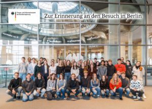 Zum Leidwesen aller Langschläfer begann der Wandertag für alle Beteiligten am frühen Morgen. So standen die Schüler und Schülerinnen bereits um 05:40 Uhr auf dem dunklen Schulhof von Haus 2. Um 06:00 Uhr traf dann der Bus ein und die Fahrt konnte losgehen. Drei Stunden später kam der Bus vor dem Reichstagsgebäude an, wo der Reisegruppenleiter aus Berlin alle nett willkommen hieß. Nach ein paar letzten Hinweisen zum Sicherheitscheck ging es direkt los zur Kontrolle und im Anschluss ins Reichstagsgebäude. Dort erwartete uns ein interessanter Vortrag im Plenarsaal, wo unter anderem die Hintergründe des historischen Gebäudes und die Entwicklung im Wandel der Zeit thematisiert wurden. Nach ca. einer Stunde interessanter Fakten zum Gebäude und dessen Inneneinrichtung war der Vortrag vorbei. So ging es gleich weiter zu einem kleinen Vortragsraum, wo uns der Initiator der Reise, Herr Dietmar Bartsch, zu Frage und Antwort bereitstand. Die Schülerinnen und Schüler stellten viele gute und interessante Fragen, die Herr Bartsch akkurat zu beantworten wusste. Er bezog zwar klar Stellung zu seiner parteipolitischen Ausrichtung. Unter Berücksichtigung seiner Position im Wahlkampf der Linkspartei war das aber zu erwarten. Nach dem ebenfalls einstündigen Gespräch mit Herrn Bartsch ging es für alle noch aufs Dach des Reichstagsgebäudes.