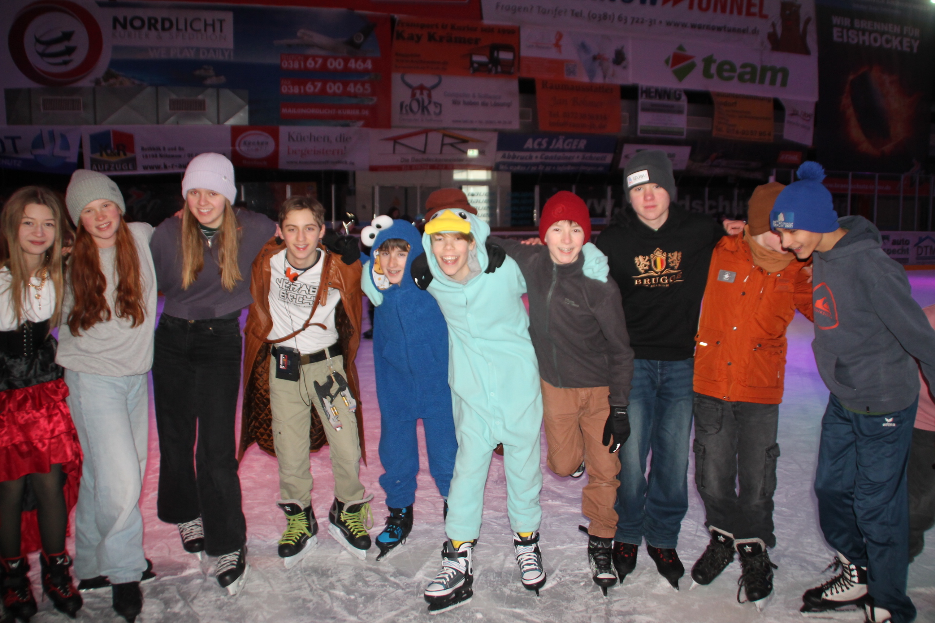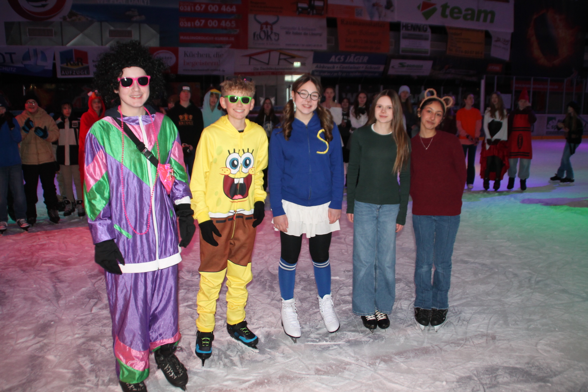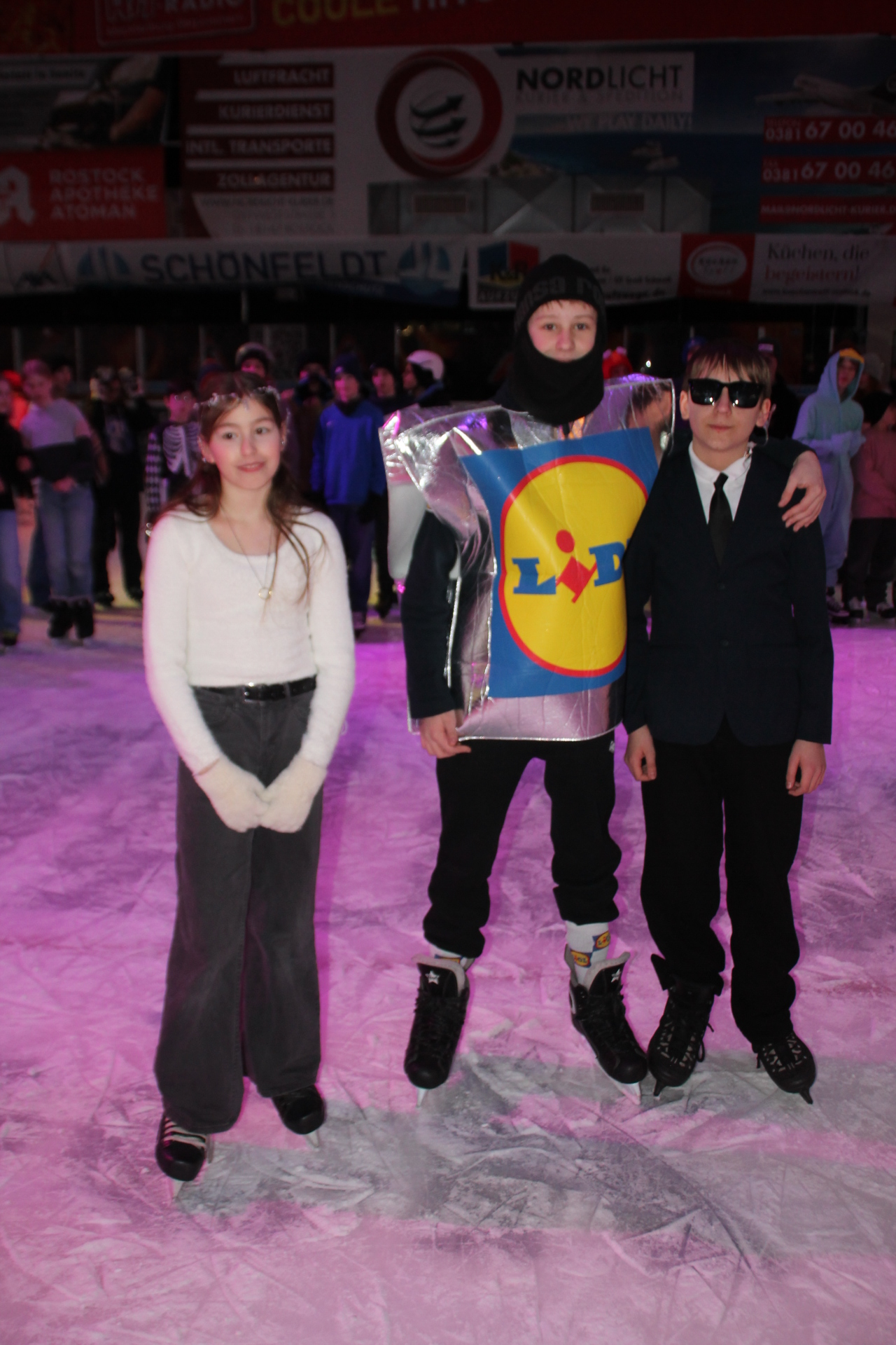 Am Dienstag, dem 03.02.26, sind die 5.-7. Klassen in der Eishalle in der Schilling-Allee zum Eisfasching gewesen. Kinder und Jugendliche konnten sich verkleiden. Wir haben tolle Kostüme gesehen, wie z. B. einen Dino, Ying und Yang, eine Lidl-tüte, Mario und Luigi und vieles mehr. Natürlich gab es jahrgangsweise auch eine Siegerehrung für die besten Kostüme. Wir hatten eine tolle Zeit dort und wünschen allen eine angenehme letzte Schulwoche und erholsame Ferien.
