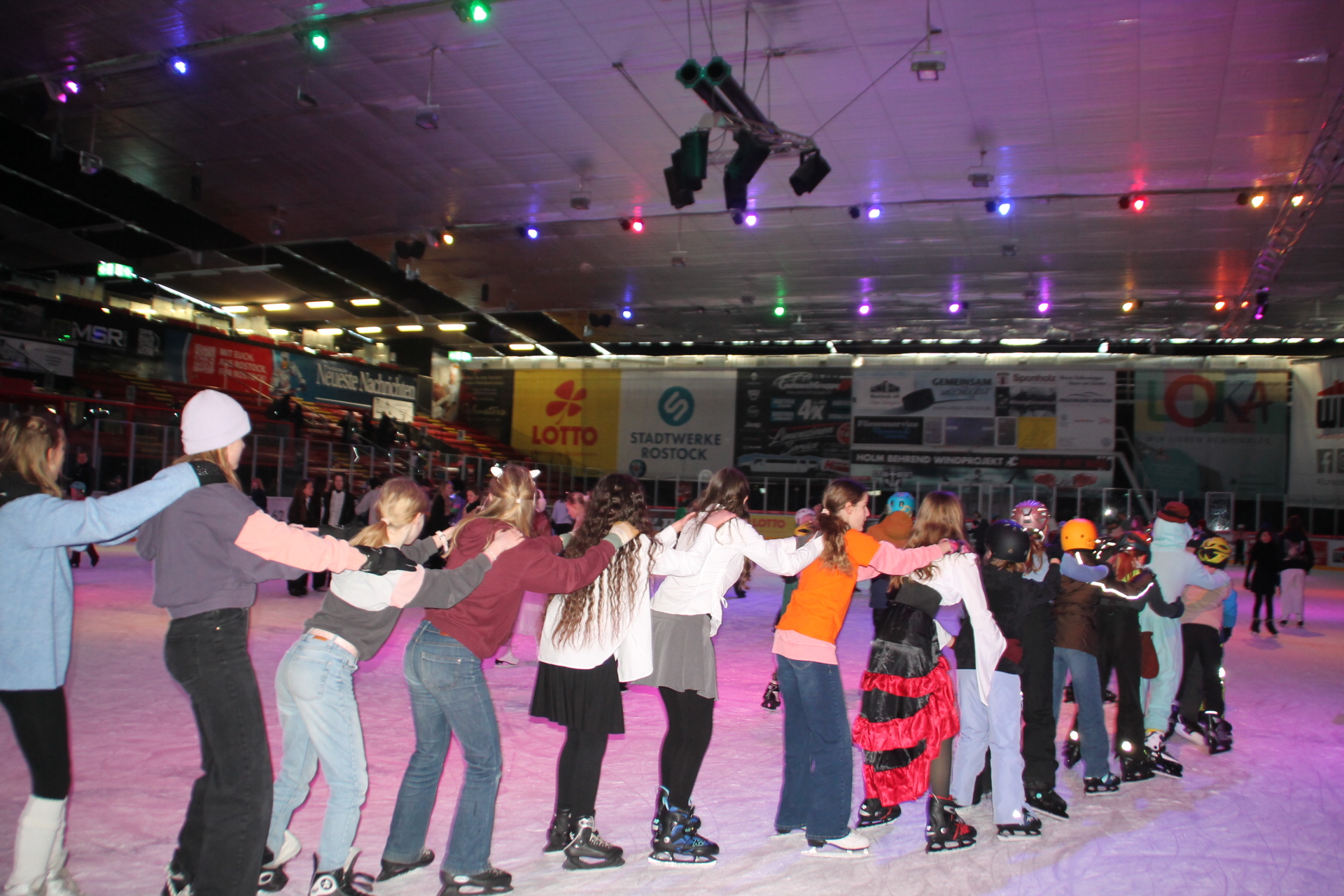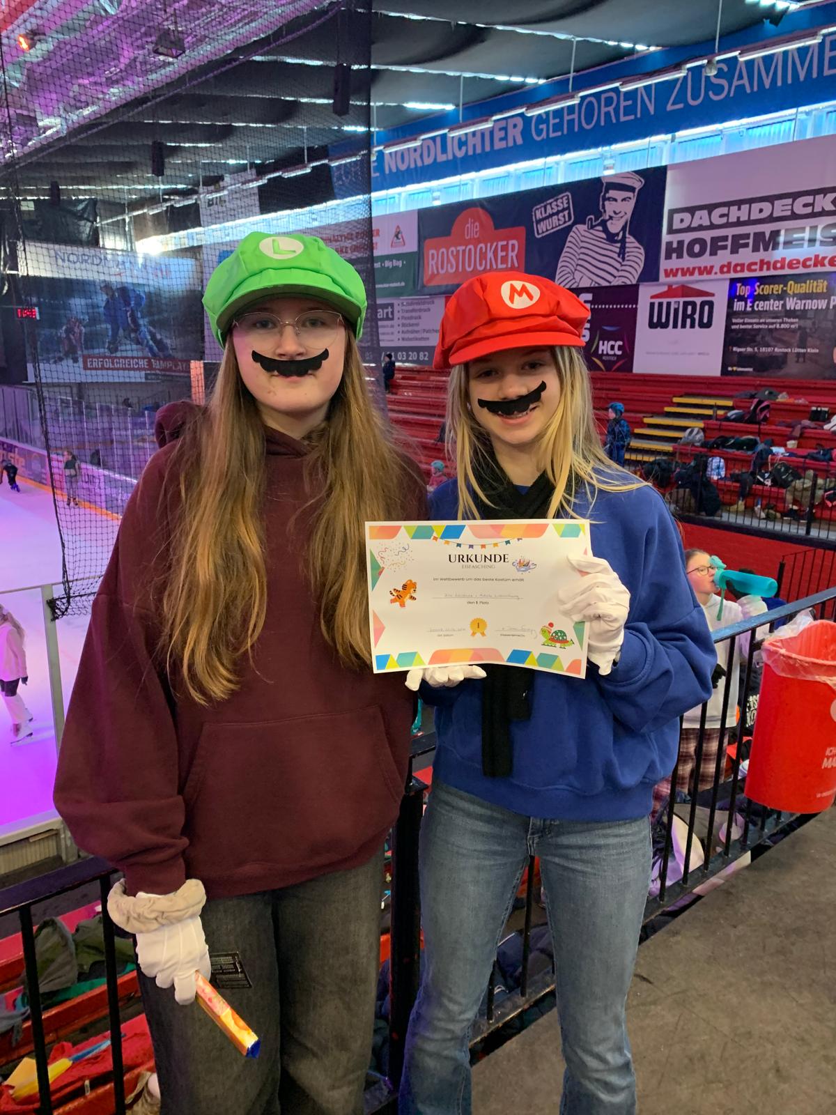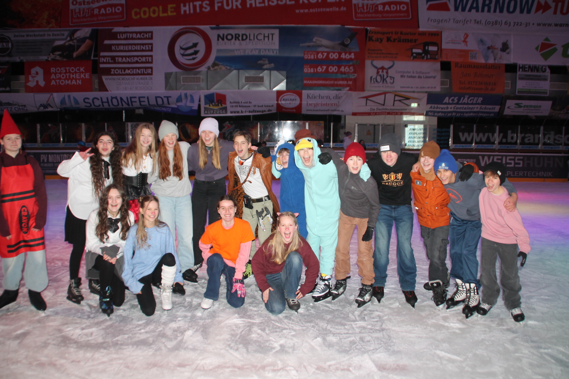 Am Dienstag, dem 03.02.26, sind die 5.-7. Klassen in der Eishalle in der Schilling-Allee zum Eisfasching gewesen. Kinder und Jugendliche konnten sich verkleiden. Wir haben tolle Kostüme gesehen, wie z. B. einen Dino, Ying und Yang, eine Lidl-tüte, Mario und Luigi und vieles mehr. Natürlich gab es jahrgangsweise auch eine Siegerehrung für die besten Kostüme. Wir hatten eine tolle Zeit dort und wünschen allen eine angenehme letzte Schulwoche und erholsame Ferien.