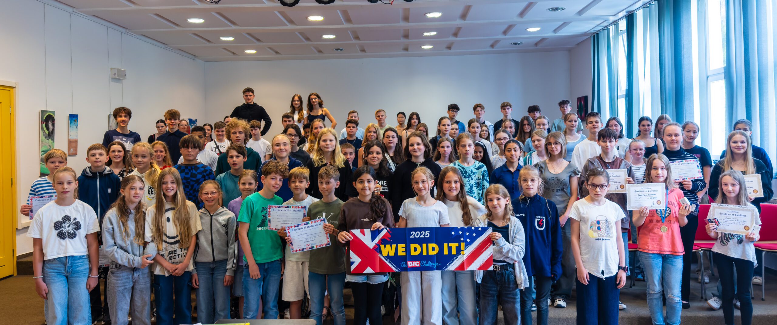 94 teilnehmende Schülerinnen und Schüler aus den Jahrgangsstufen 5, 7, 8 und 9 stellten im Frühling 2025 ihre Englischkenntnisse im internationalen Wettbewerb „TheBigChallenge“ erstmalig unter Beweis.