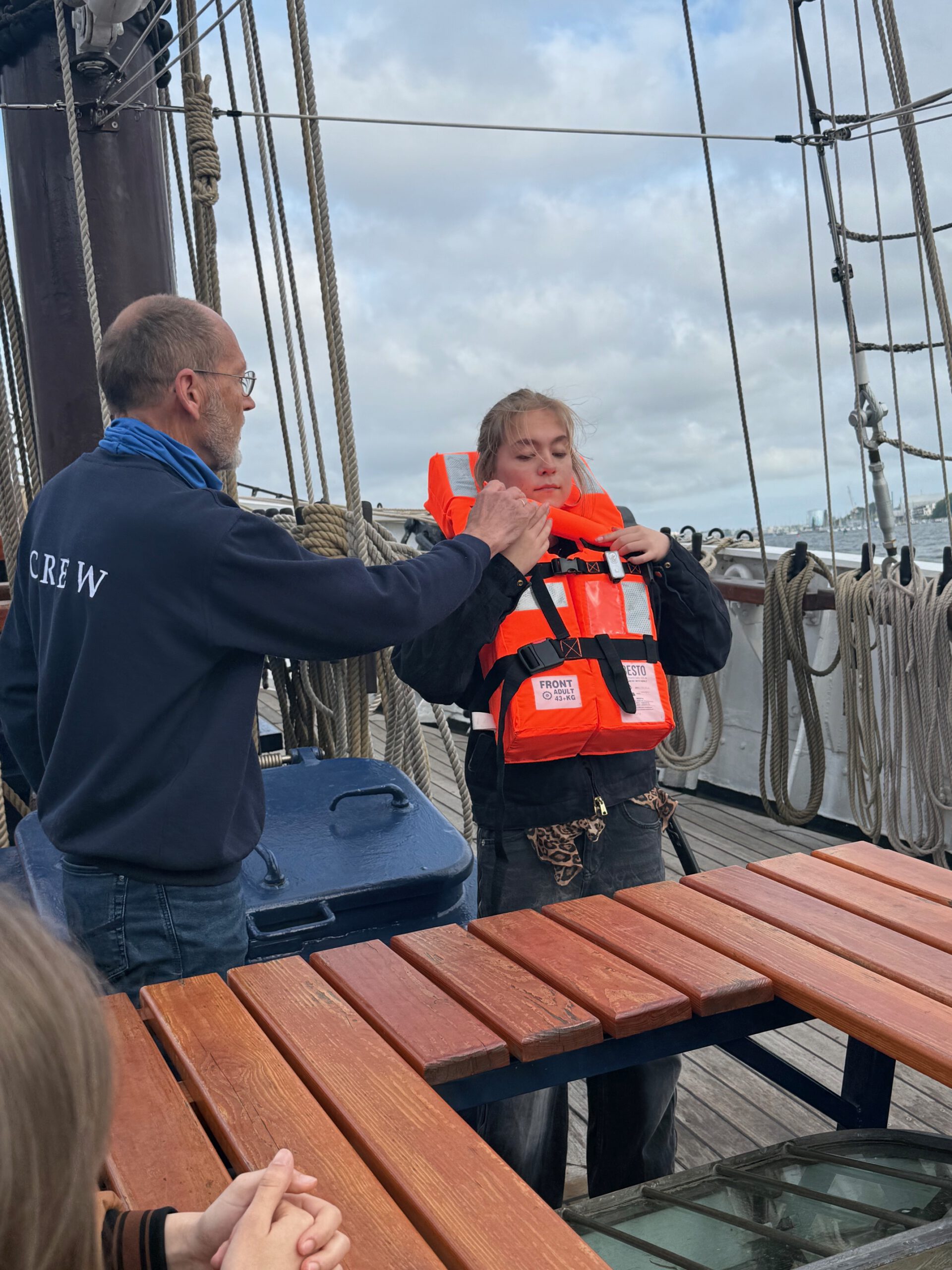 Mit einem Segelschiff die Warnow entlangschippern und Rostock vom Wasser aus erkunden, hat der eine oder andere bestimmt schon einmal privat gemacht. Diese Möglichkeit als Schule zu bekommen, ist jedoch etwas Besonderes. Die Mitglieder des Hanse Sail Vereins organisierten für interessierte Schülerinnen und Schüler der 9. bis 11. Klasse einen maritimen Tag im Rahmen der Berufsorientierung, der uns auf der Warnow, vom Stadthafen Rostock bis Warnemünde, auf der Ostsee und zurückführte. An Bord eines traditionellen Großseglers, der Santa Babara Anne, erhielten wir wertvolle Informationen zur Stadtentwicklung Rostocks, die u.a. durch den Zugang zum Meer entscheidend war. Eine Vielzahl von Unternehmen – regional wie global – haben sich heutzutage entlang der Warnow angesiedelt, sei es Liebherr, AIDA, EUROPORT oder in Zukunft 50Hertz. Wir bekamen die einmalige Gelegenheit, beim TAMSEN-Maritim anzudocken und auf Erkundungstour durch die großen Schiffsbetriebshallen zu gehen. Sei es als Konstruktionsmechaniker, Bootsbauer oder Elektroinstallateur – mehrere Ausbildungsmöglichkeiten wurden praxisnah vorgestellt. Mit etwa 130 Beschäftigten hat das Unternehmen einen Familiencharakter, der bei der Tour durch den Kontakt mit mehreren Mitarbeitern deutlich wurde. Wer Interesse an einem Praktikum bei TAMSEN-Maritim hat, muss sich allerdings beeilen – es werden immer nur 2-3 Plätze vergeben. Im Anschluss ging es mit der Santa Barbara Anna an den Warnemünder Leuchttürmen auf die Ostsee raus. Bedingt durch lebhaften Wind musste der praktische Teil des Segelhissens ausfallen. Die Schülerinnen und Schüler erprobten dafür ihre Fähigkeiten beim Knoten oder anderen Tätigkeiten am Deck. Wir als Schule bedanken uns für dieses besondere Erlebnis und hoffen, dass wir auch nächstes Jahr mit einigen Interessierten diese besondere Erkundung Rostocks entlang der Warnow durchführen können.