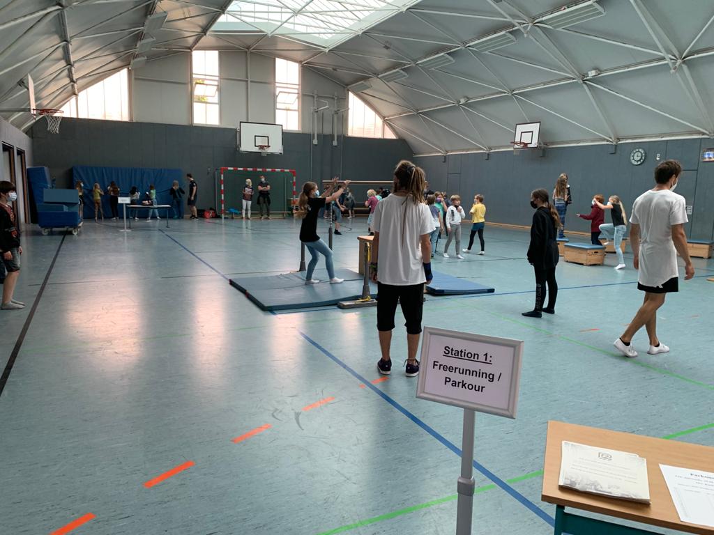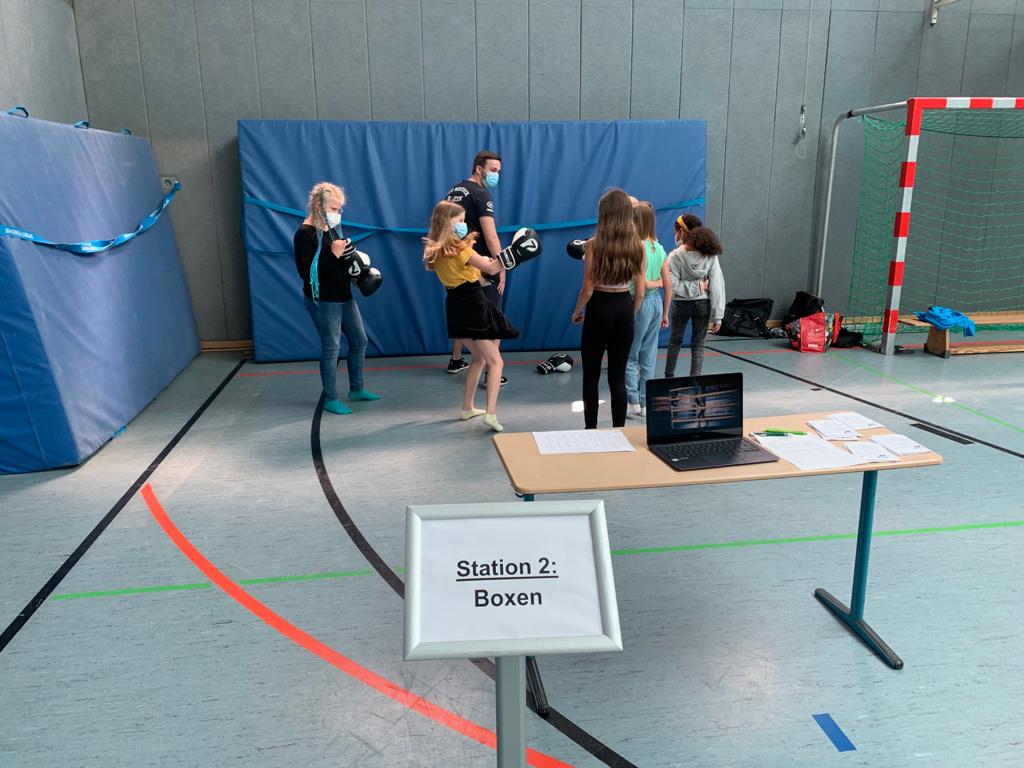 Unsere Schülerinnen und Schüler konnten die sportlichen Mitmach-Angeboten wie „Freerunning“, „Boxen“ und „Yoga“ ausprobieren und sich am Angebotsstand zum Percussion-Ensemble „Takadima“ und dem Handwerkerkurs des MGKK informieren.