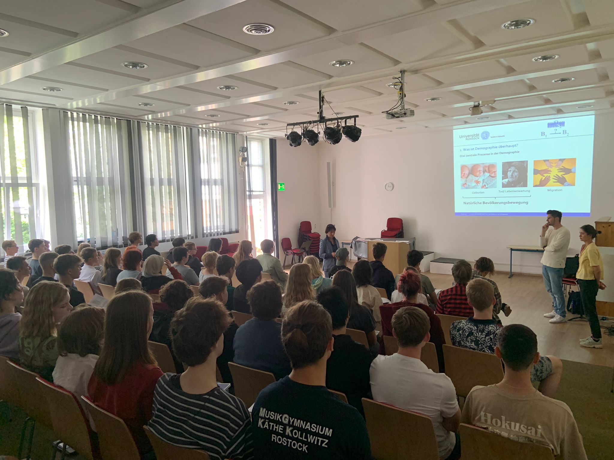 Um euch diese Inhalte auch hautnah erlebbar zu machen, erkunden wir zum Beispiel in Klasse 5 unsere Schulumgebung, machen eine Supermarktrallye, orientieren uns mithilfe eines Kompass oder fahren mit den 10. Klassen ins Seebad Warnemünde, wo wir den Tourismusort und die Ostseeküste einmal näher untersuchen werden. Für alle, die sich in der Oberstufe noch intensiver mit Geographie beschäftigen wollen, steht eine Vielzahl an anschaulichen Untersuchungen bevor: Sei es in Form einer Stadtexkursion oder -kartierung, eines Workshops zum Thema nachhaltige Produktion oder mittels Virtual Reality-Brillen. Hier könnt ihr Wasserprojekte an kenianischen Schulen in 360°-Perspektive erforschen und bekommt direkte Eindrücke von Schülern aus Ostafrika.