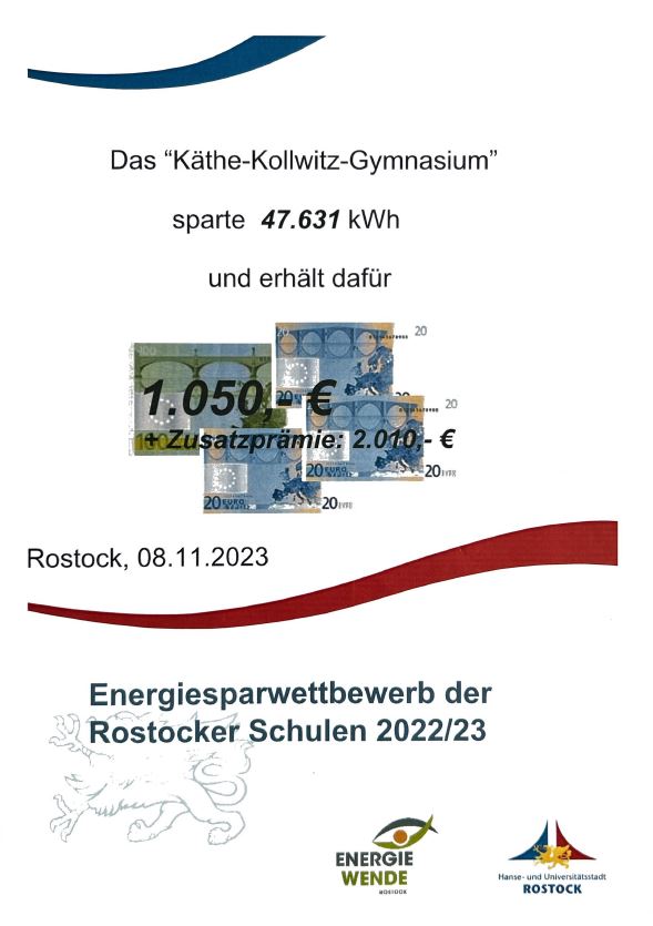 Im Schuljahr 2022/2023 nahm unsere Schule erneut am Energiesparwettbewerb der Rostocker Schulen teil.