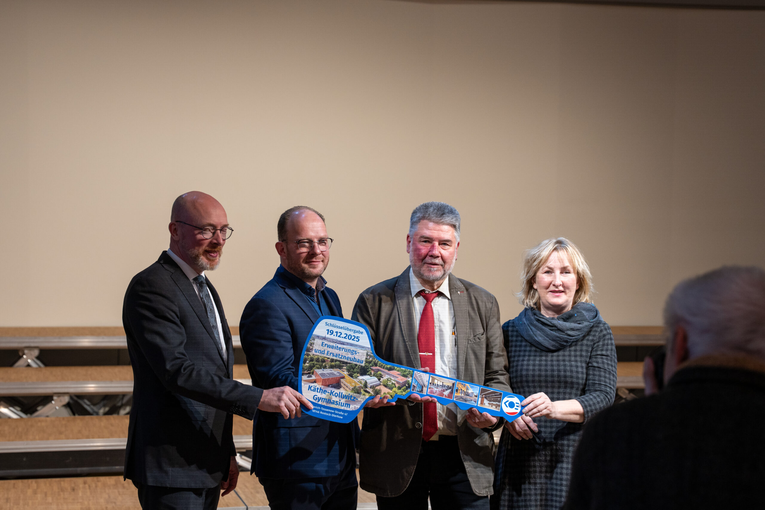 Rostock, 19. Dezember 2025 – Der Eigenbetrieb Kommunale Objektbewirtschaftung und -entwicklung (KOE) der Hanse- und Universitätsstadt Rostock hat heute den Erweiterungsbau des Musikgymnasiums Käthe Kollwitz in der Heinrich-Tessenow-Straße feierlich übergeben.